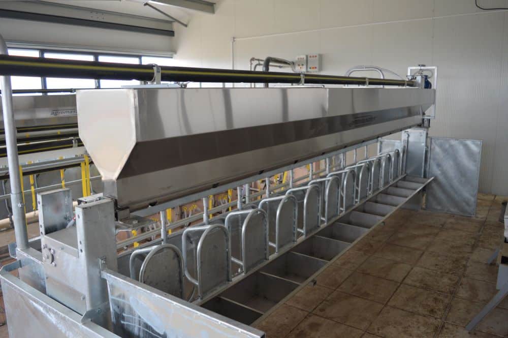 4. Distribución Precisa de Alimentación: La sala de ordeño HEKTOR incorpora un mecanismo de distribución precisa de alimentos, asegurando que cada animal reciba la cantidad adecuada de alimento durante el proceso de ordeño.