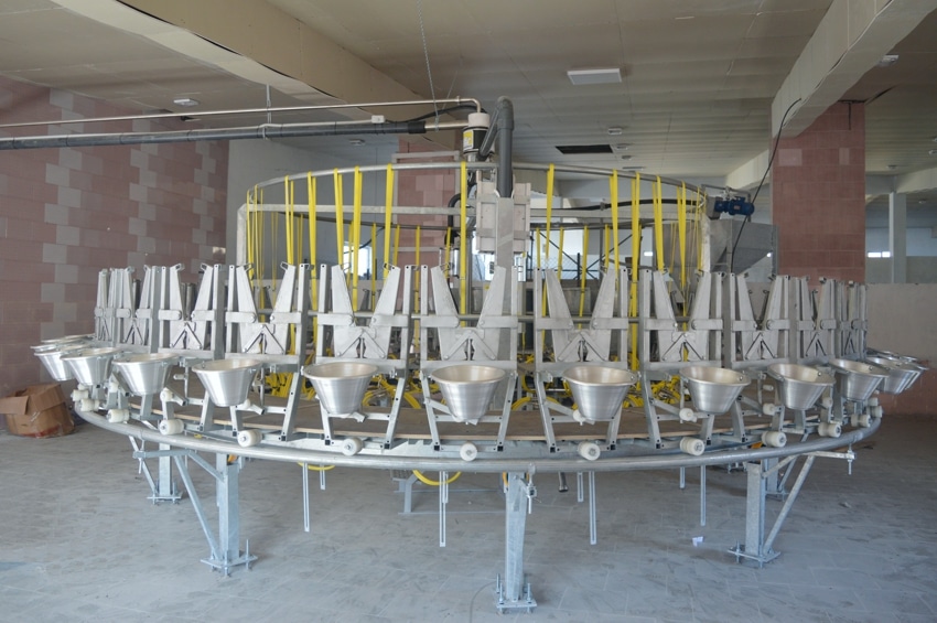 Salle de traite rotative intérieure pour brebis et chèvres